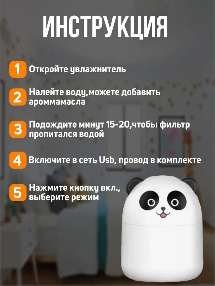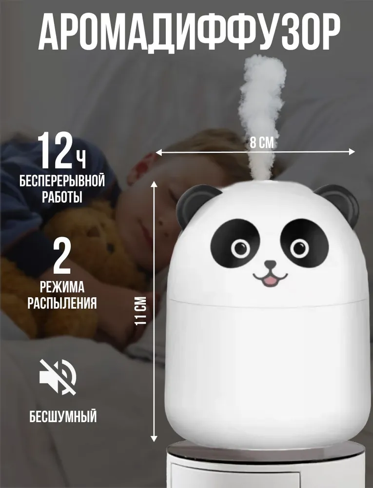 Маленький и очень милый увлажнитель воздуха. Все работает. Ребенку понравилось. Работает как с подсветкой, так и без нее. Бесшумный.